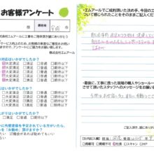 数社お見積りを依頼された中で弊社に施工をご依頼いただき、ありがとうございました。S様とは他社様と弊社の見積書とで、どこが違うのかなどを比較確認するお時間をいただきました。見積内容や作業内容の丁寧な説明が決め手とのことですが、しっかりご理解とご納得いただける説明を心掛けている弊社といたしまして、とても励みになるお言葉です。誠にありがとうございます。施工についても満足していただける仕上がりになり、工事のご縁をいただけたこと担当者として私も大変嬉しく存じます。今後も何か気になることがございましたら、お気軽にご連絡ください。
