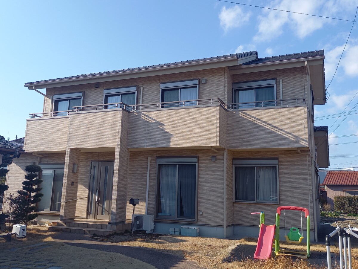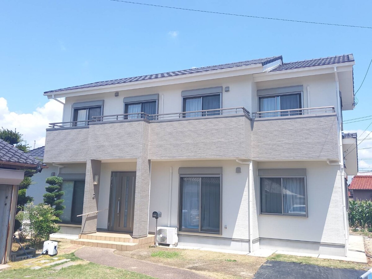 【知立市】ハイブリッド無機塗料でホワイト系に変わった外壁塗装とベランダ防水工事(戸建てN様邸)