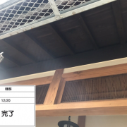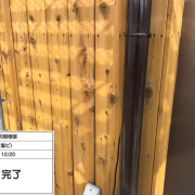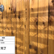 保護塗料が透けてムラになっています。保護塗料には防虫・防腐・藻硬化があり、木を守る大切な役割を担っています。