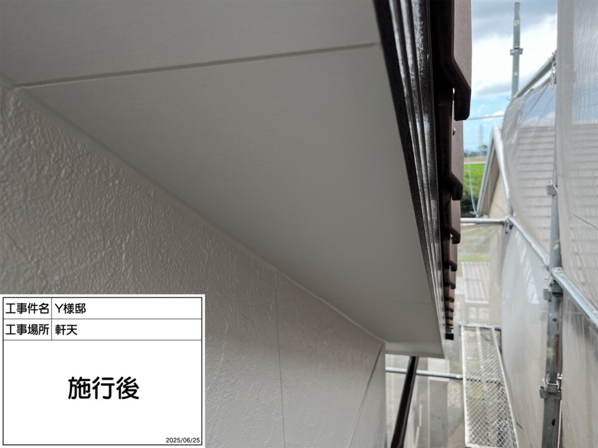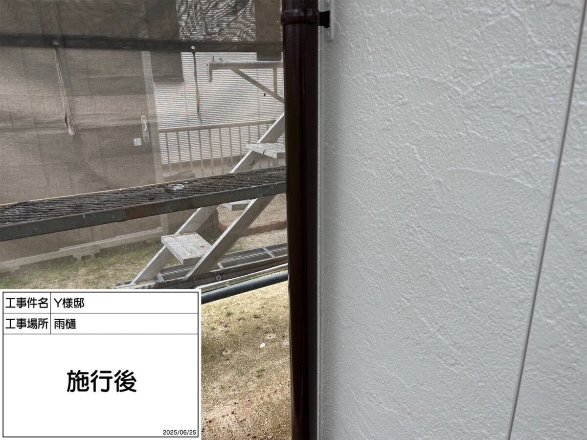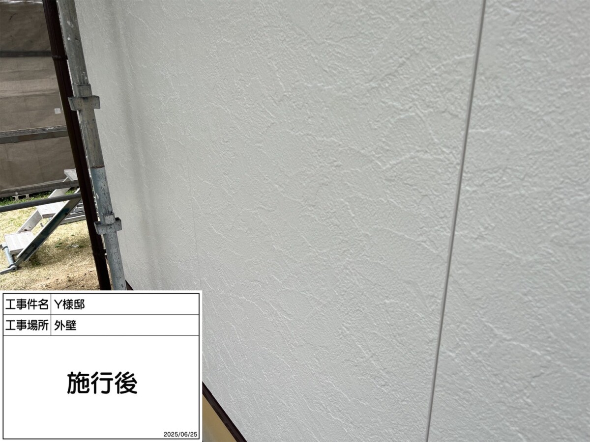 Y様ありがとうございました。梅雨時期の施工でしたが天気が心配でしたが空梅雨だったことで予定通りに工事を進めることができました。色選びではかなりお悩みでしたので、仕上がりにもご満足いただけましたことは幸いです。洗濯物の件は説明不足によりご不便をおかけし、申し訳ございませんでした。現場職人、スタッフにもメッセージをいただきましたこと、何より励みになります。これからも定期点検などでお伺いさせていただきます。末永いお付き合いのほど、よろしくお願いいたします。