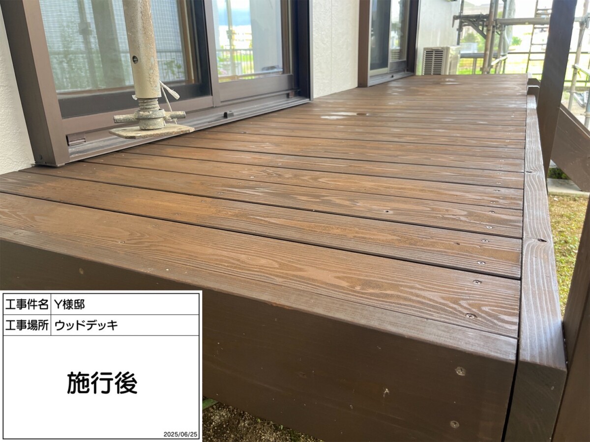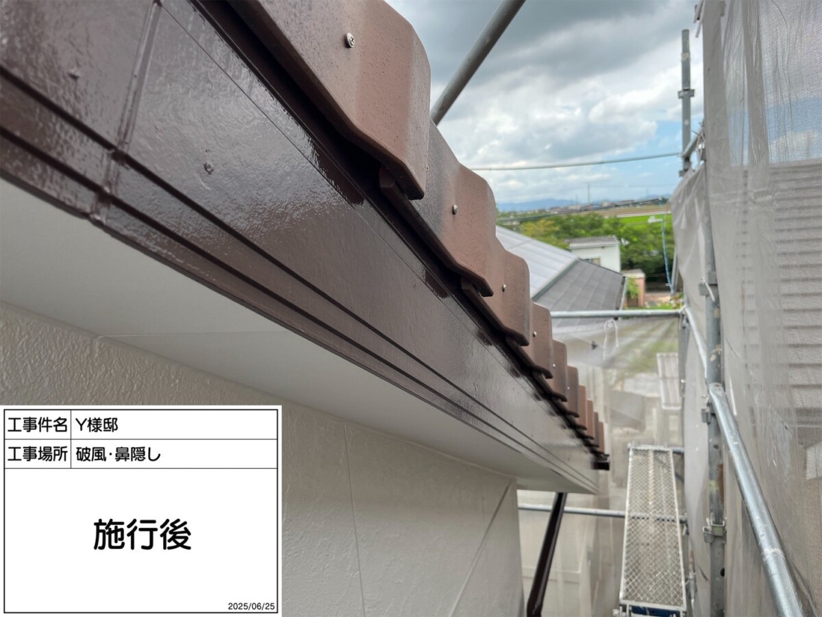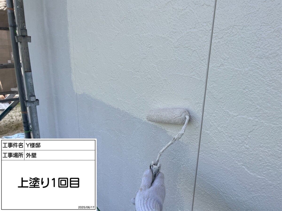 Y様ありがとうございました。梅雨時期の施工でしたが天気が心配でしたが空梅雨だったことで予定通りに工事を進めることができました。色選びではかなりお悩みでしたので、仕上がりにもご満足いただけましたことは幸いです。洗濯物の件は説明不足によりご不便をおかけし、申し訳ございませんでした。現場職人、スタッフにもメッセージをいただきましたこと、何より励みになります。これからも定期点検などでお伺いさせていただきます。末永いお付き合いのほど、よろしくお願いいたします。