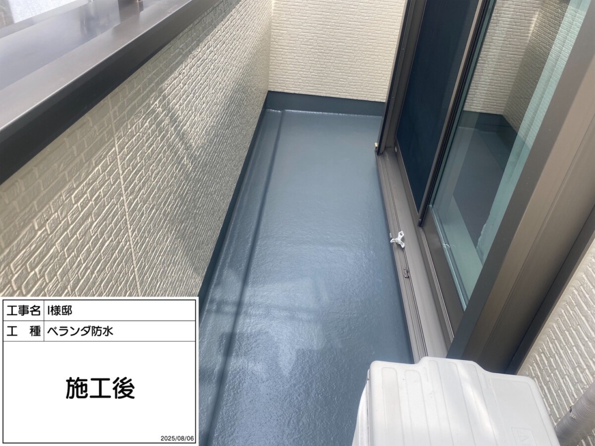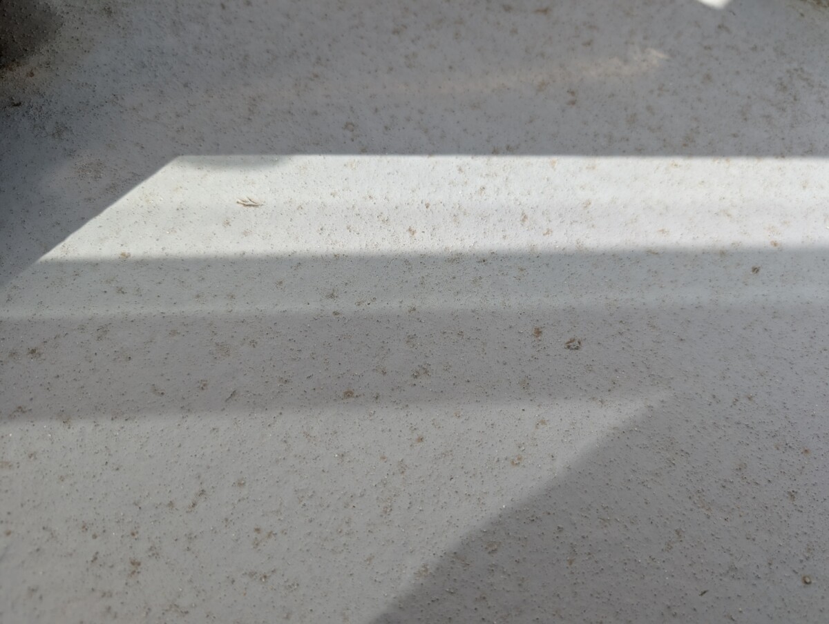 ベランダのトップコートが【ひび割れ】しています。今の段階では防水層には影響はありませんが、今後雨漏りに繋がらないためにも防水工事をおすすめします。