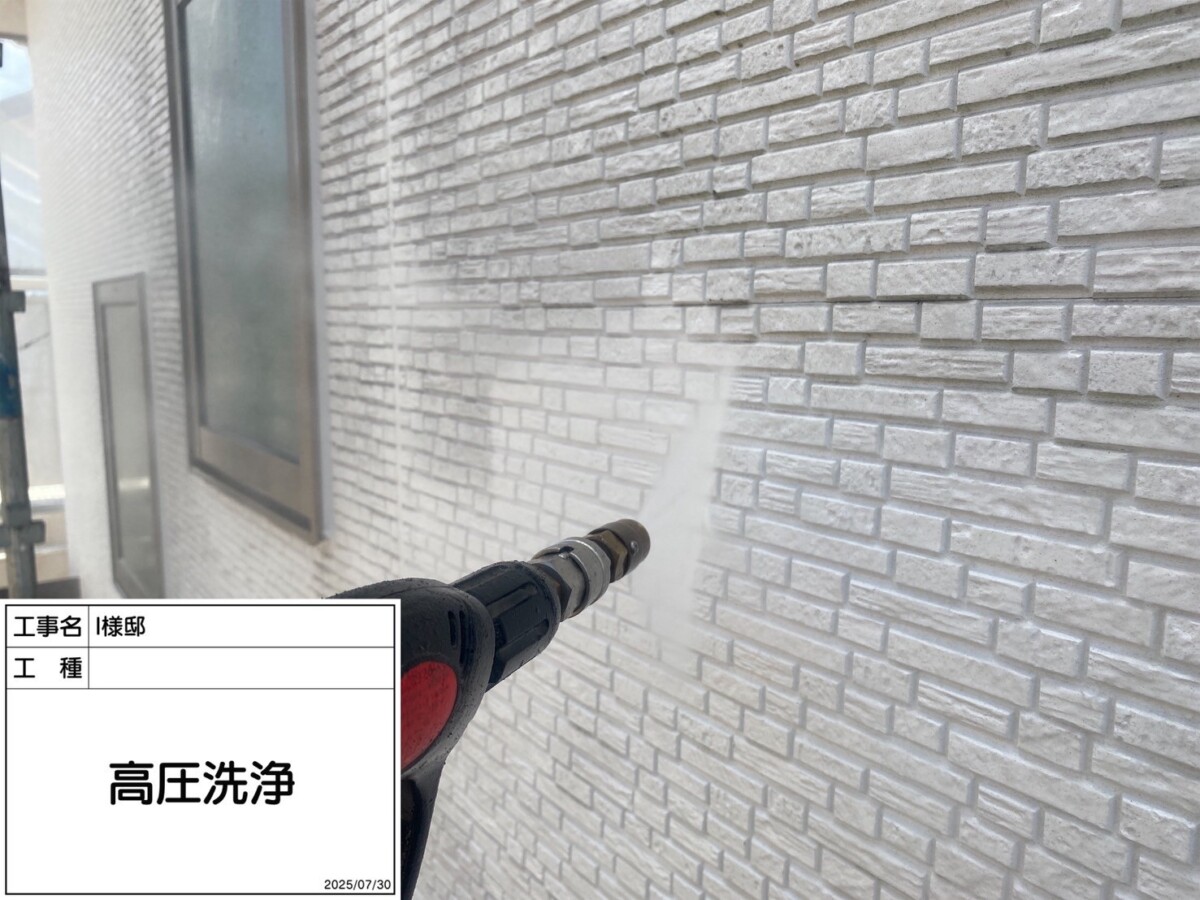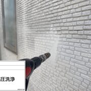 業務用の高圧洗浄機を使用し、長年積もった汚れや苔、古い塗膜なども綺麗に洗い落とします。塗装箇所だけでなく土間なども洗浄いたします。