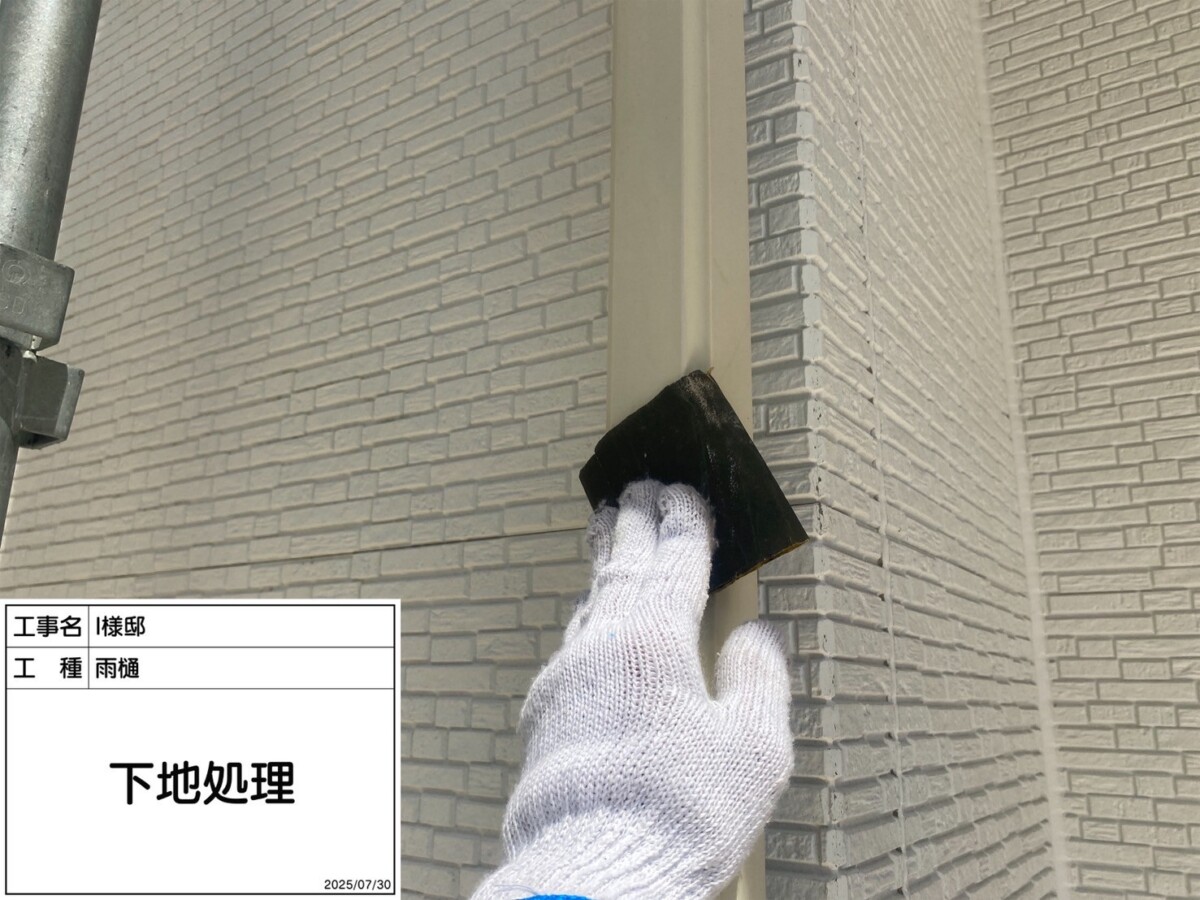 雨樋は掴み金具のみ金属製のため下塗りに錆止め効果のある下塗り材を使用します。掴み金物の錆が酷い場合や破損している場合は、交換や取付を行います。