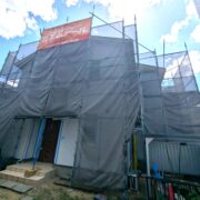 工事は足場組立から行います。安全に作業するためだけでなく、安定した作業場所を確保する事は施工品質を保つためにも重要です。安心して工事をお迎えいただけますよう、工事日までに担当者が近隣様へ工事のご挨拶をさせていただきます。