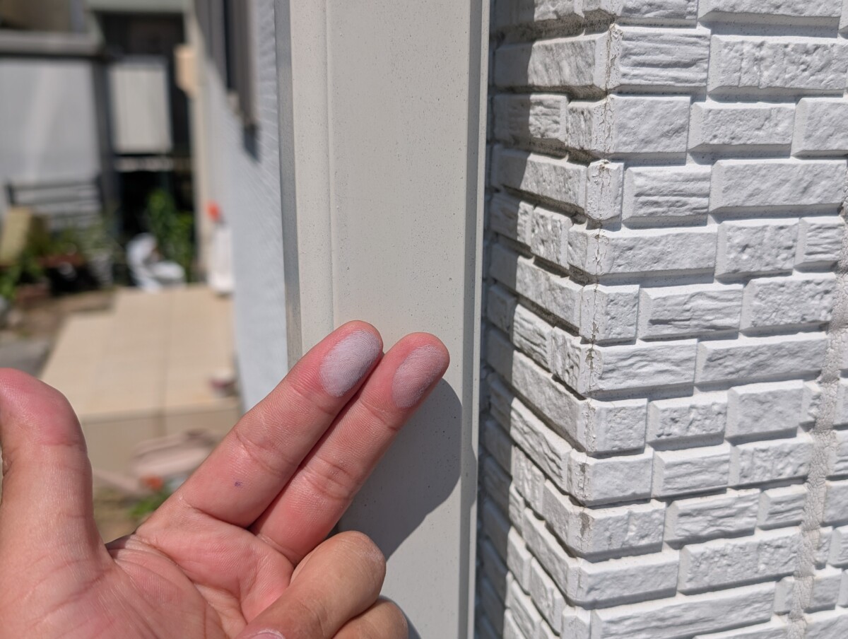 チョーキングとは外壁の塗膜が紫外線などの影響を受けて劣化し、塗料の中に含まれている顔料が粉状に浮き出てくることです。塗り替えの目安の一つです。