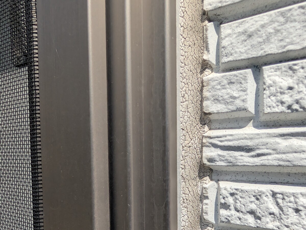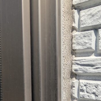 シーリングが劣化して【切れ】ています。一般的なシーリングの耐久年数は10程で硬化→亀裂→切れ→欠損という段階で劣化していきます。