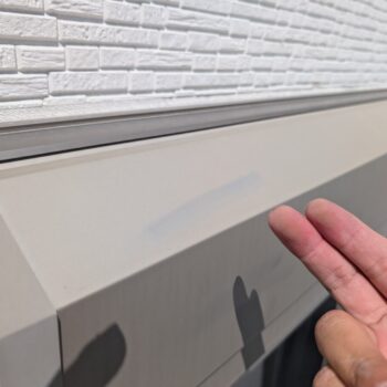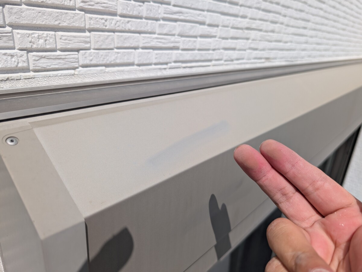 紫外線や風雨が直接当たらない箇所ではありませんので劣化は軽微ですが、新築時の塗膜が経年劣化により透けてムラになることがあります。
