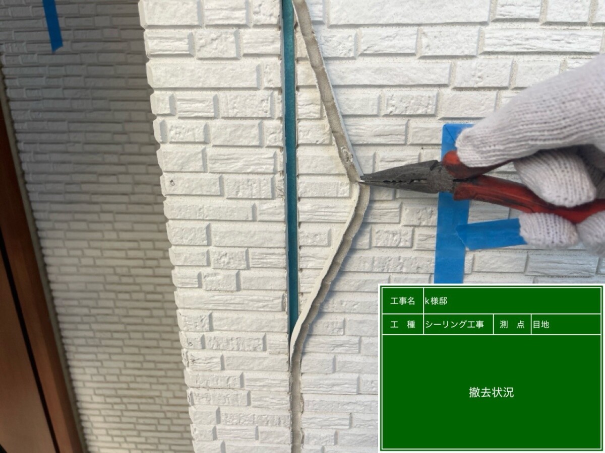まずは劣化した既存のシーリング材を撤去する作業を行います。