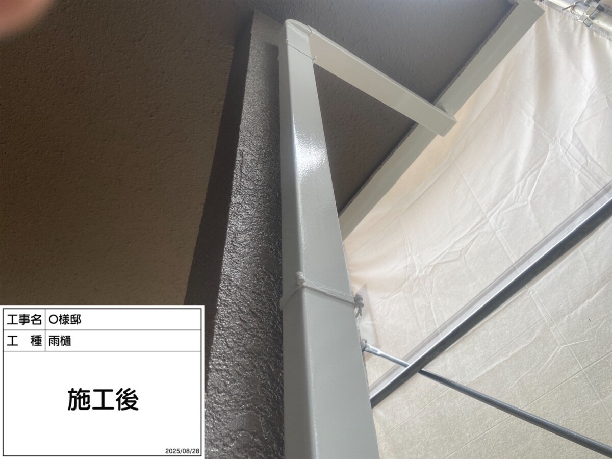 雨樋は掴み金具のみ金属製のため下塗りに錆止め効果のある下塗り材を使用します。掴み金物の錆が酷い場合や破損している場合は、交換や取付を行います。