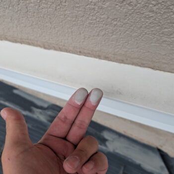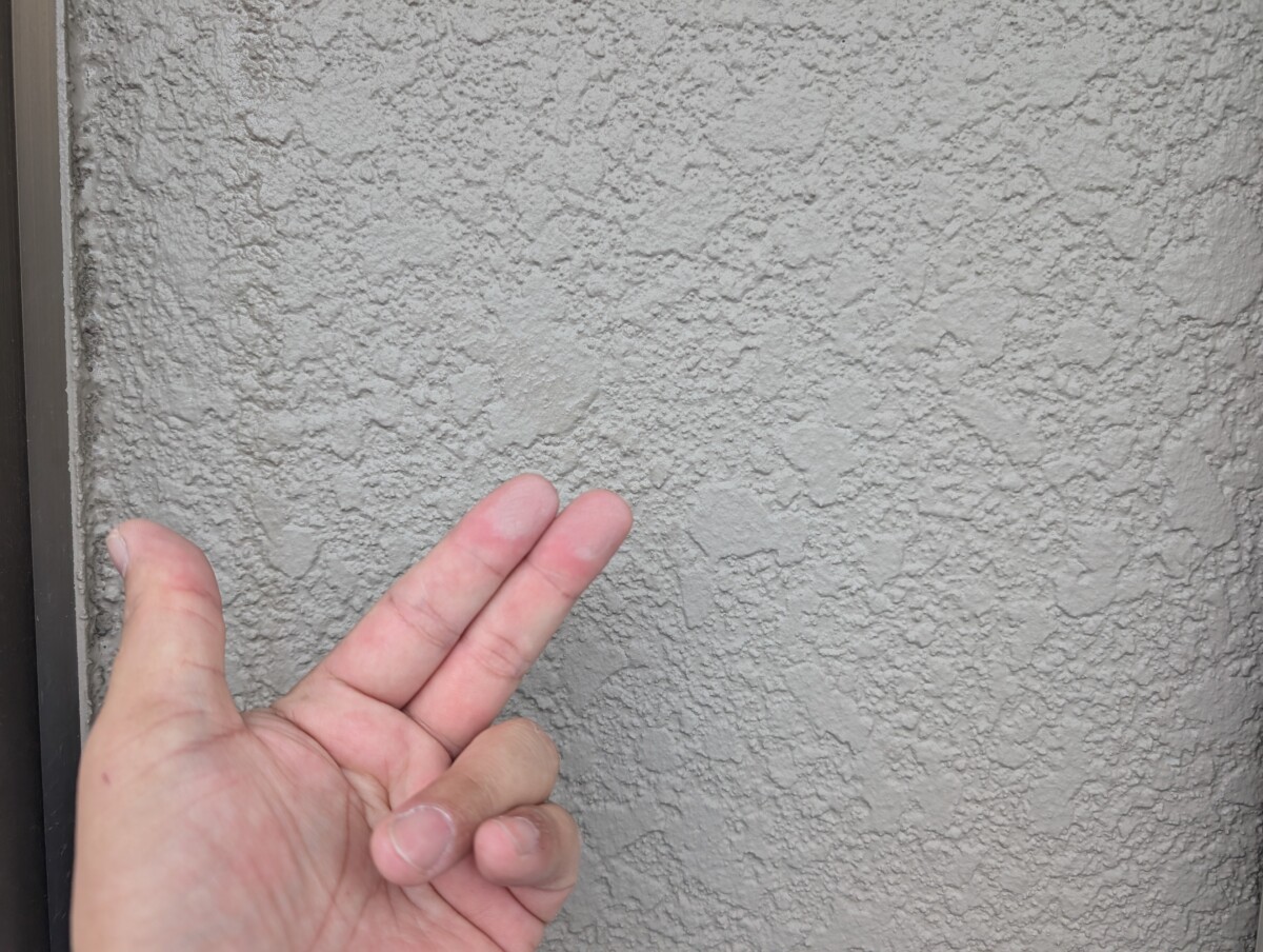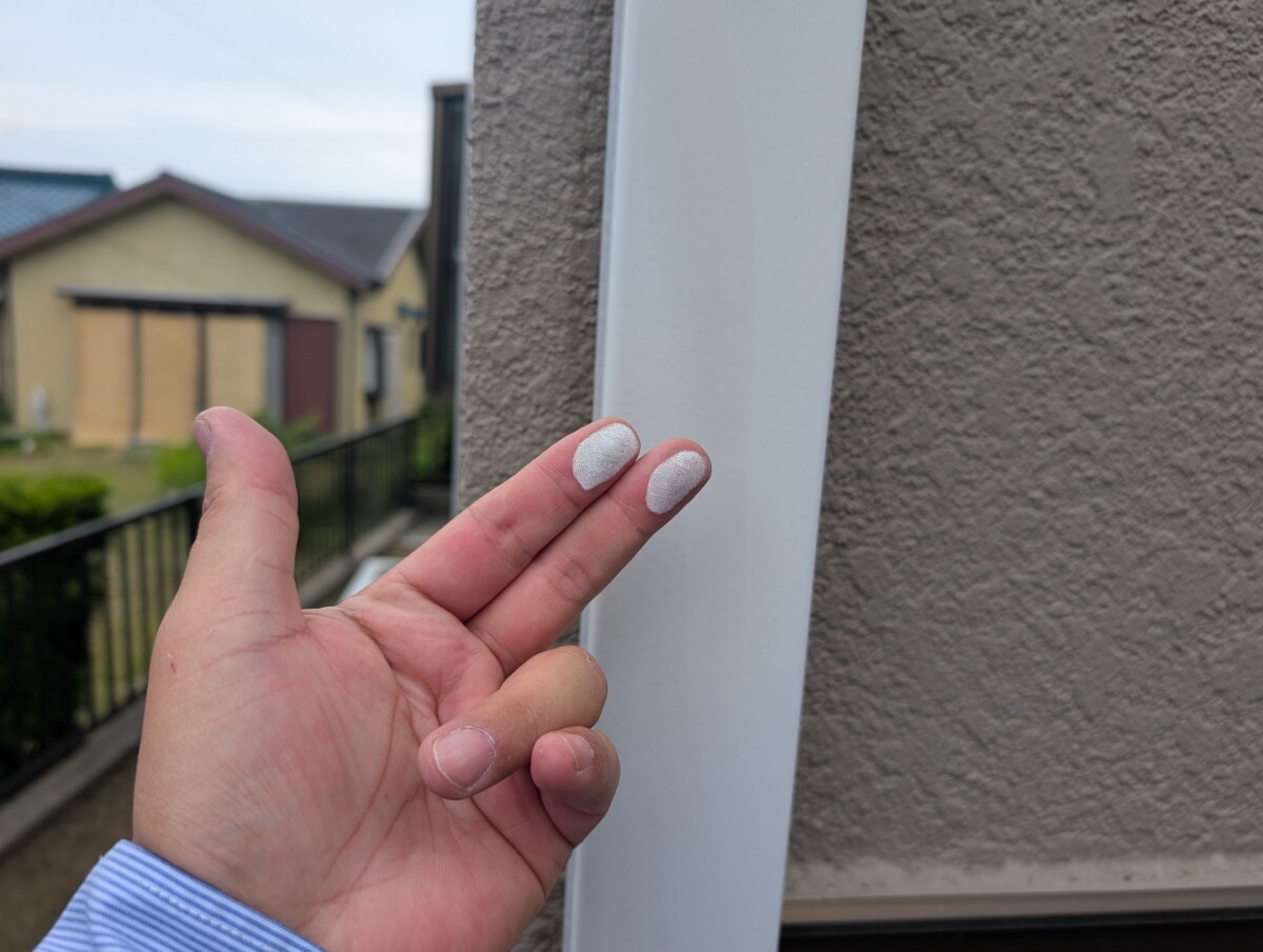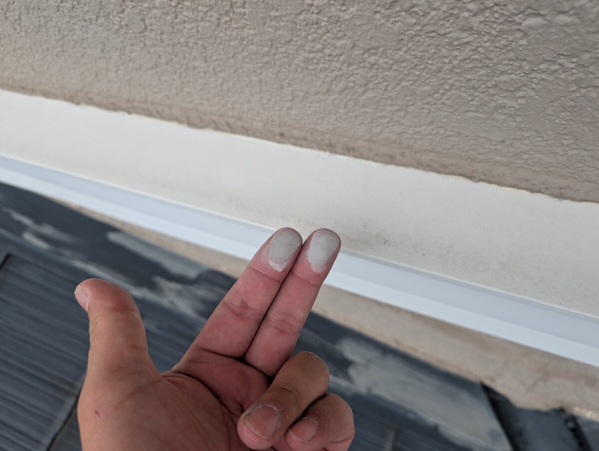 チョーキングとは外壁の塗膜が紫外線などの影響を受けて劣化し、塗料の中に含まれている顔料が粉状に浮き出てくることです。塗り替えの目安の一つです。
