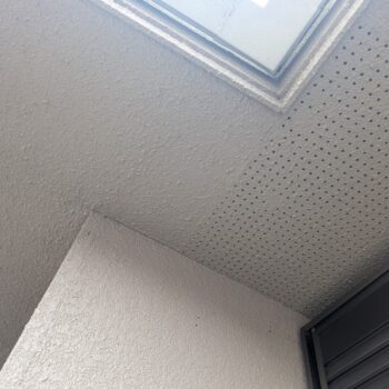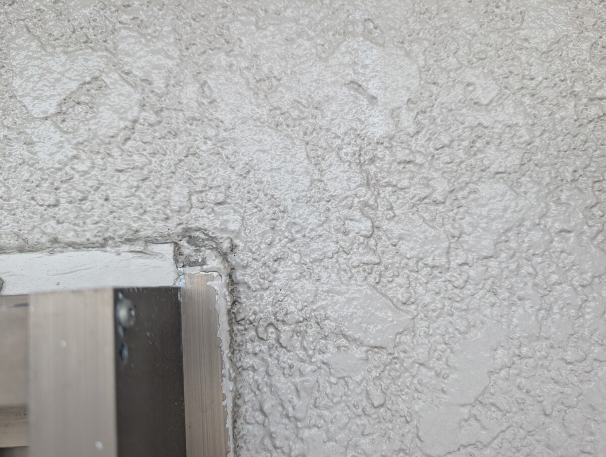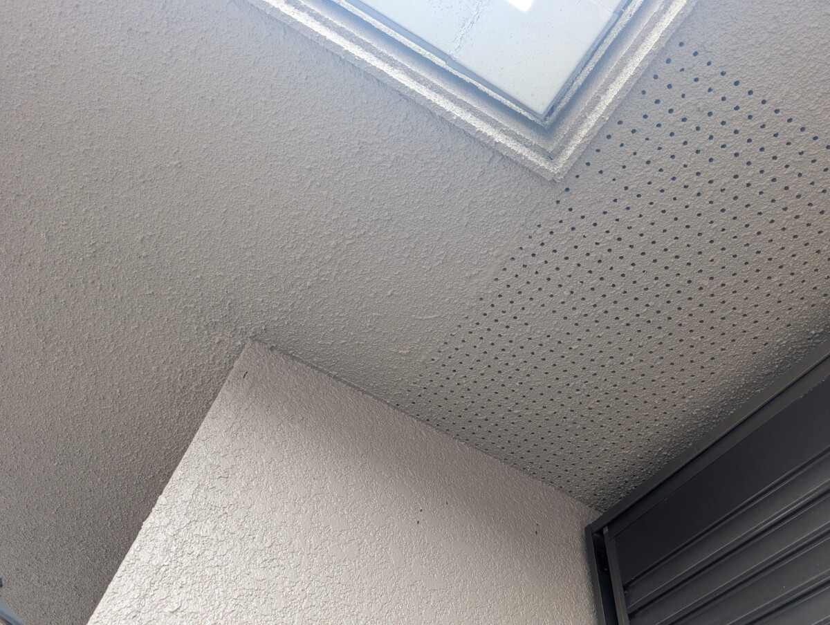 紫外線や風雨が直接当たらない箇所ではありませんので劣化は軽微ですが、新築時の塗膜が経年劣化により透けてムラになることがあります。