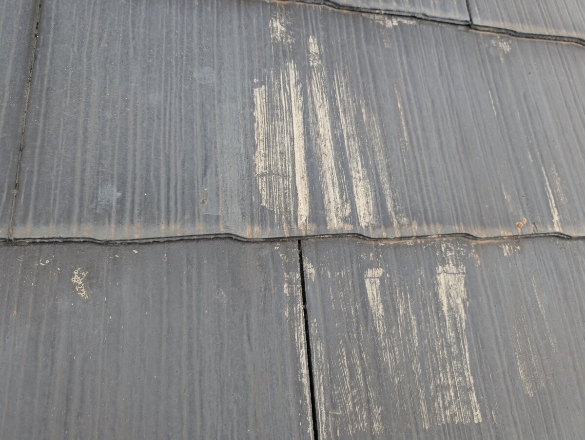 【退色】しています。塗膜が弱ってきている状態です。塗装をオススメします。
