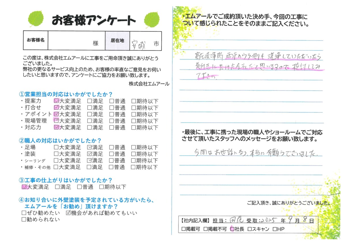 お客様の声 安城市O様邸