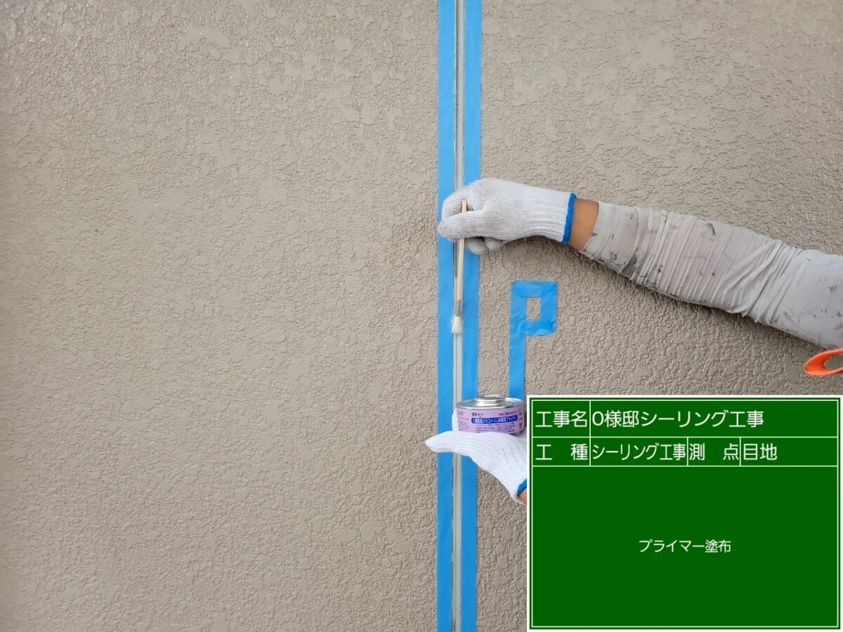 シーリング材が外壁材とより密着するよう、プライマーを塗布します。