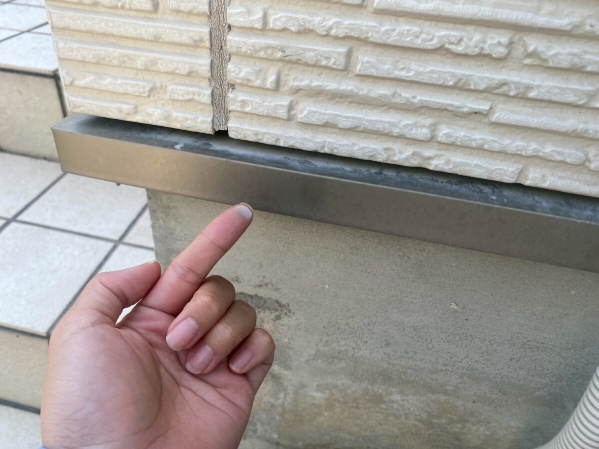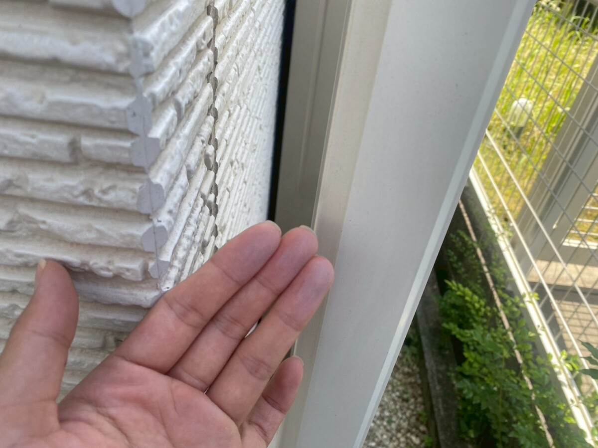 シーリングが劣化して【切れ】ています。一般的なシーリングの耐久年数は10程で硬化→亀裂→切れ→欠損という段階で劣化していきます。