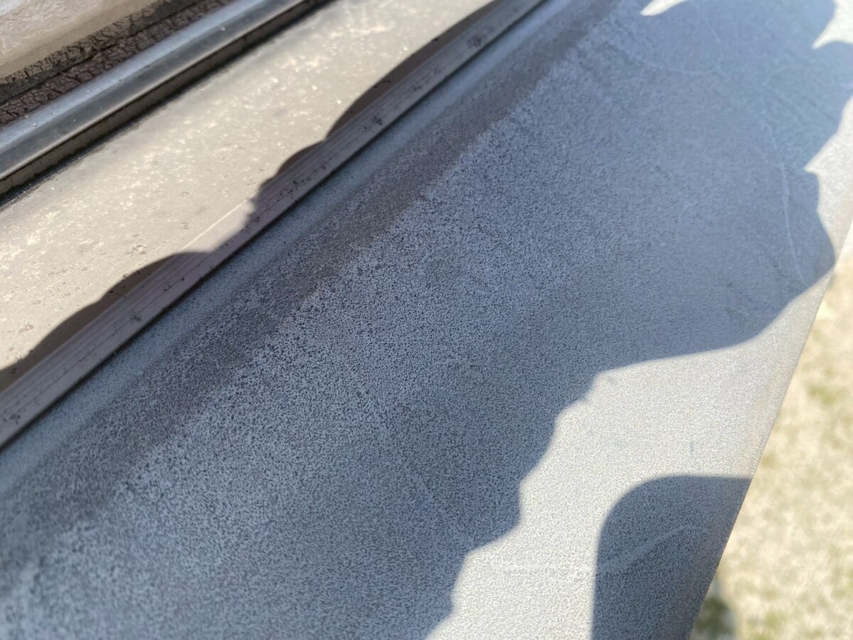 鉄部にも【チョーキング】が発生しており、塗膜が弱っている状態です。塗装による保護をおすすめします。