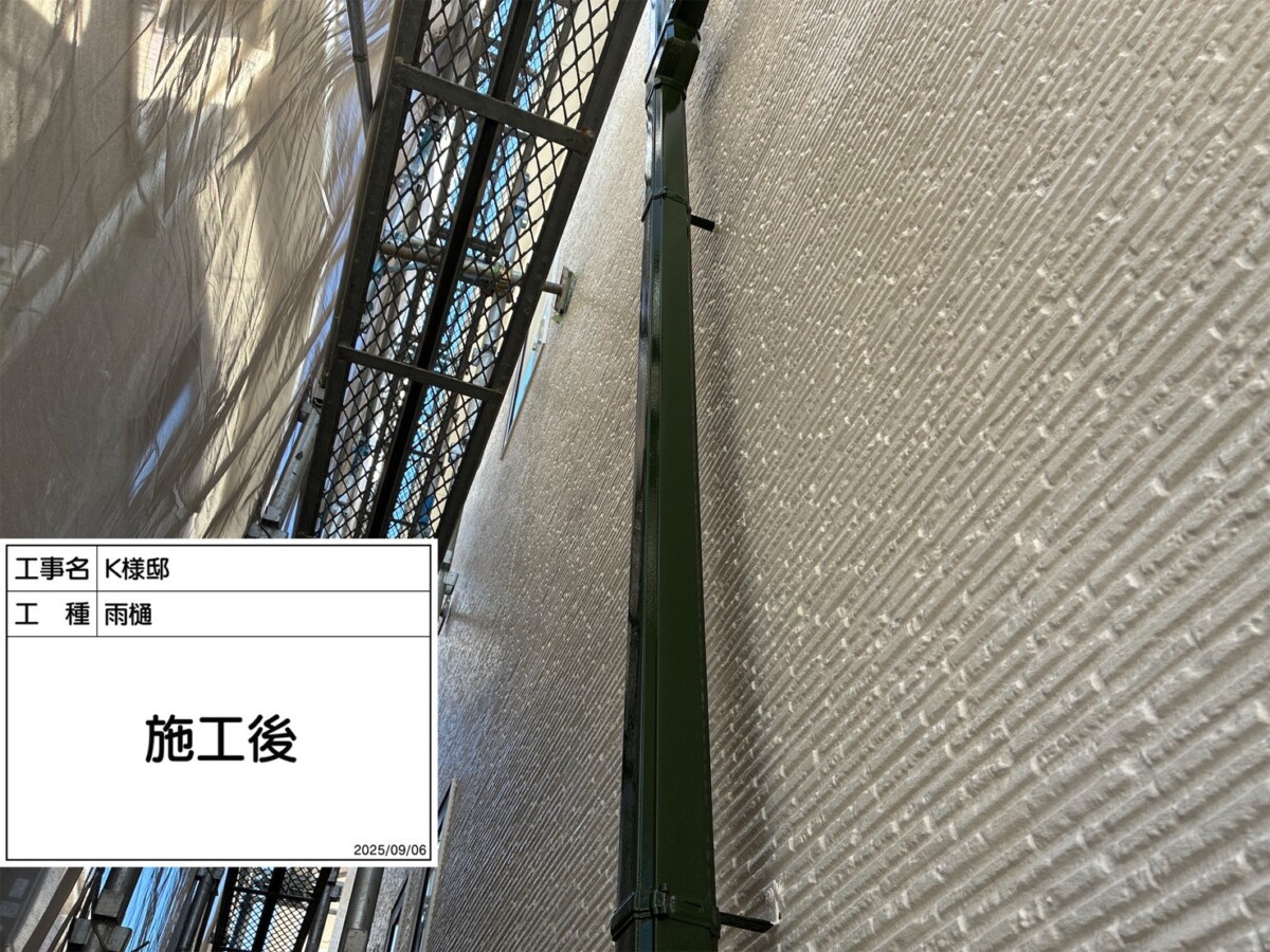 雨樋は掴み金具のみ金属製のため下塗りに錆止め効果のある下塗り材を使用します。掴み金物の錆が酷い場合や破損している場合は、交換や取付を行います。