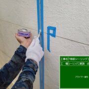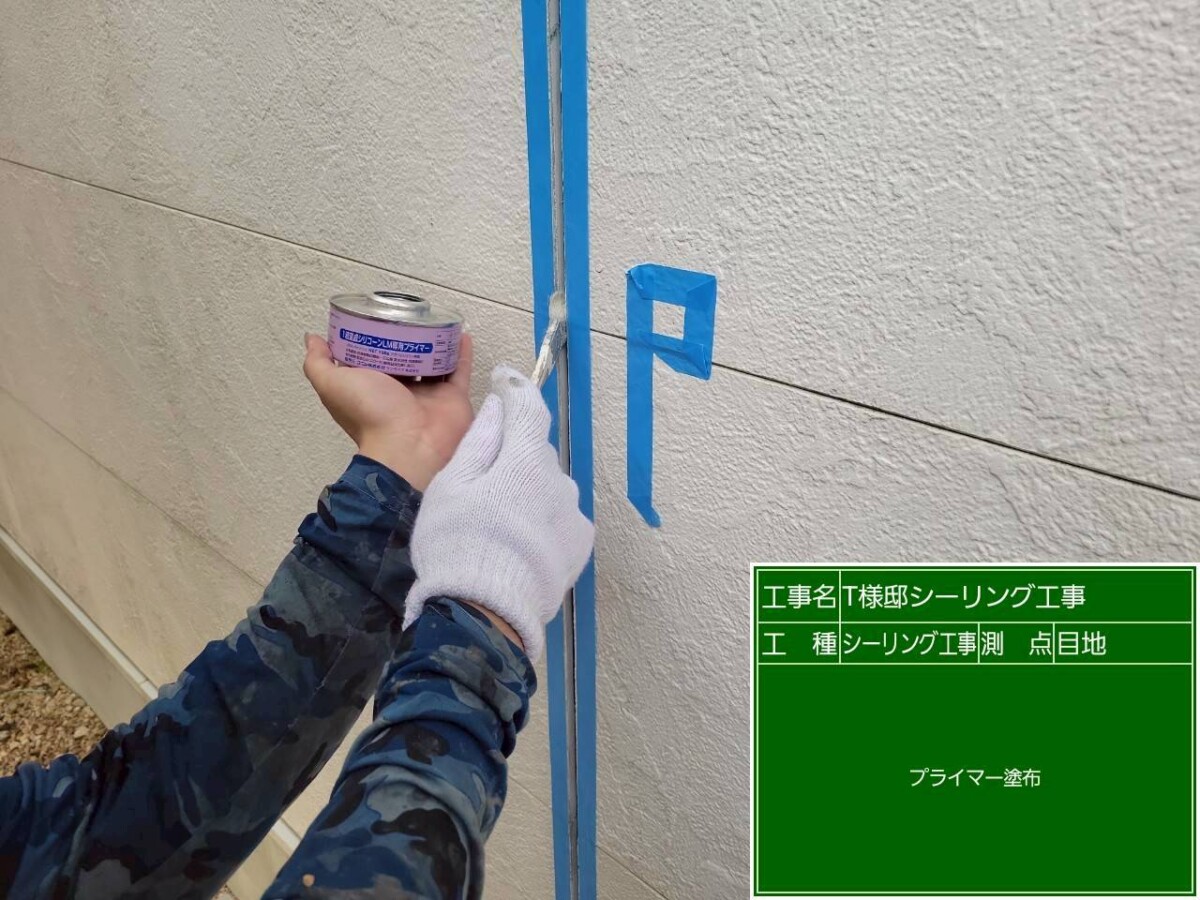 シーリング材が外壁材とより密着するよう、プライマーを塗布します。