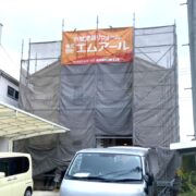工事は足場組立から行います。安全に作業するためだけでなく、安定した作業場所を確保する事は施工品質を保つためにも重要です。安心して工事をお迎えいただけますよう、工事日までに担当者が近隣様へ工事のご挨拶をさせていただきます。