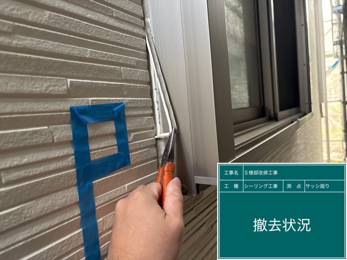 まずは劣化した既存のシーリング材を撤去する作業を行います。