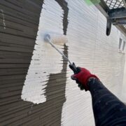 外壁は塗装面積が一番広く、塗料の匂いが建物の中まで届いてしまうため、主に臭気の少ない水性塗料を使用します。現在は油性塗料と同等の耐久性があるため外壁には水性塗料の使用をおすすめいたします。