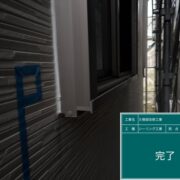 【数量】足場:255.4㎡、外壁:168.9㎡、屋根:50.1㎡、シーリング:299.3m 【使用材料】スーパーセランフレックス、スーパーセランマイルド、SRシールH100 【塗装色】外壁25-90A・N-35、付帯部:N-35・N-90・22-50B |