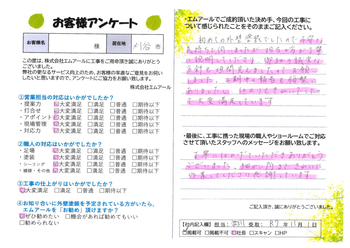 お客様の声 刈谷市S様邸