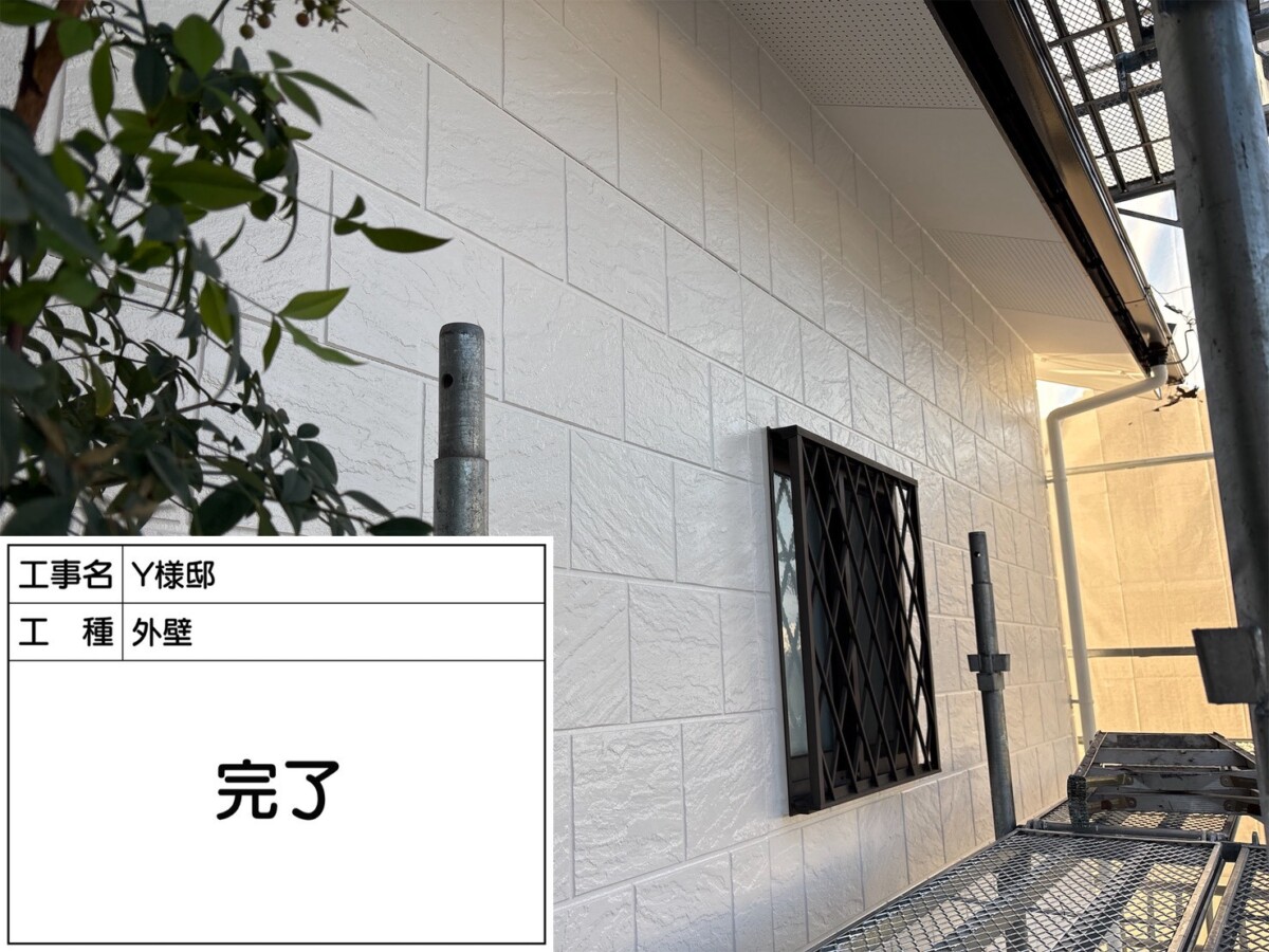 Y様ありがとうございました。初めての外壁塗装で不安な点も多数あるとのことでしたが、詳しくお話をさせていただき不安を解消した上でご契約いただけるよう努めました。塗装の色もかなりお悩みでしたが、仕上がりも気に入っていただけたようで幸いです。工事中はご不便もあったかと思いますが、心残りなく工事を終えていただけるよう対応させていただきました。今後もY様のように工事をお任せいただいた皆様に喜んでいただけるよう尽力してまいります。