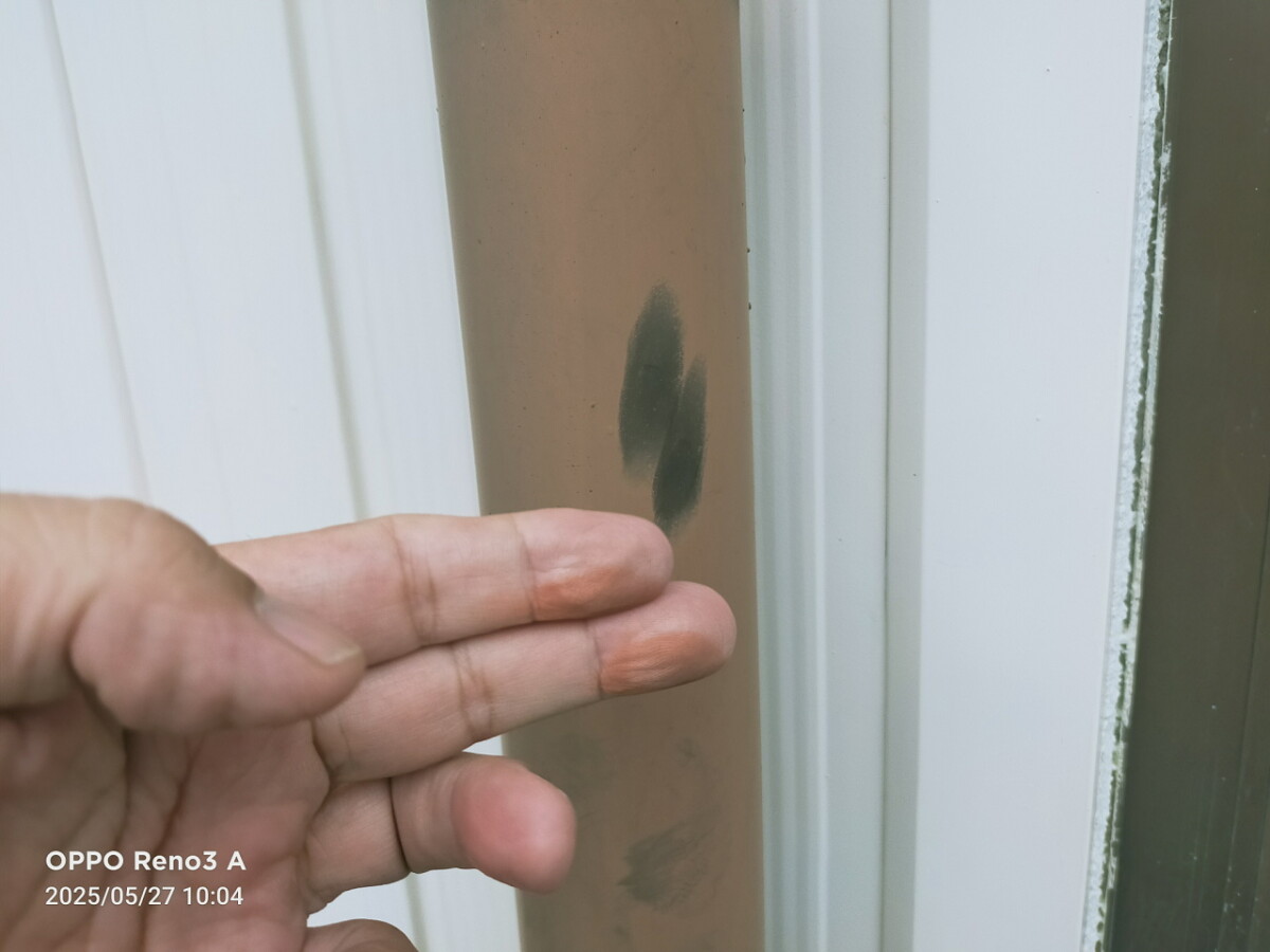【雨樋、戸袋、屋根水切り、庇】チョーキング、色褪せ