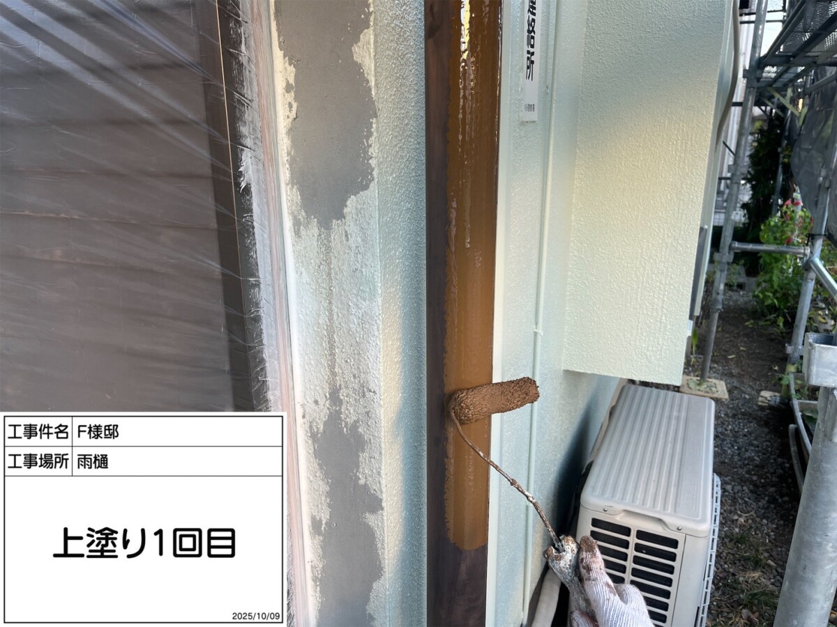 雨樋は掴み金具のみ金属製のため下塗りに錆止め効果のある下塗り材を使用します。掴み金物の錆が酷い場合や破損している場合は、交換や取付を行います。