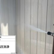 業務用の高圧洗浄機を使用し、長年積もった汚れや苔、古い塗膜なども綺麗に洗い落とします。塗装箇所だけでなく土間なども洗浄いたします。