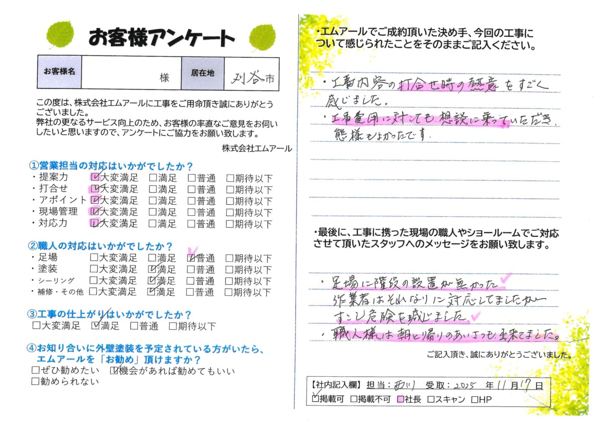お客様の声 刈谷市F様邸