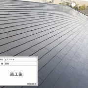 新築時の屋根を見ると、屋根材が上下に重なっている部分に隙間があると思います。これは通気したり、雨水を排出したりするための工夫です。ところが屋根を塗装改修する時、塗料で重なり部分が密着してしまうことがあります。すると雨水が屋根材の裏側に溜まりやすくなり、屋根の雨漏りや腐朽の原因となってしまいます。