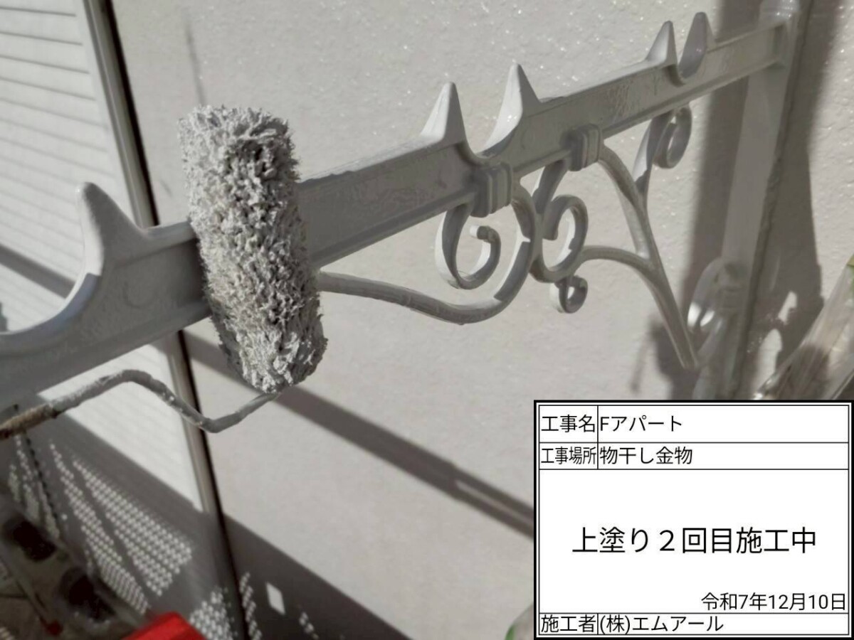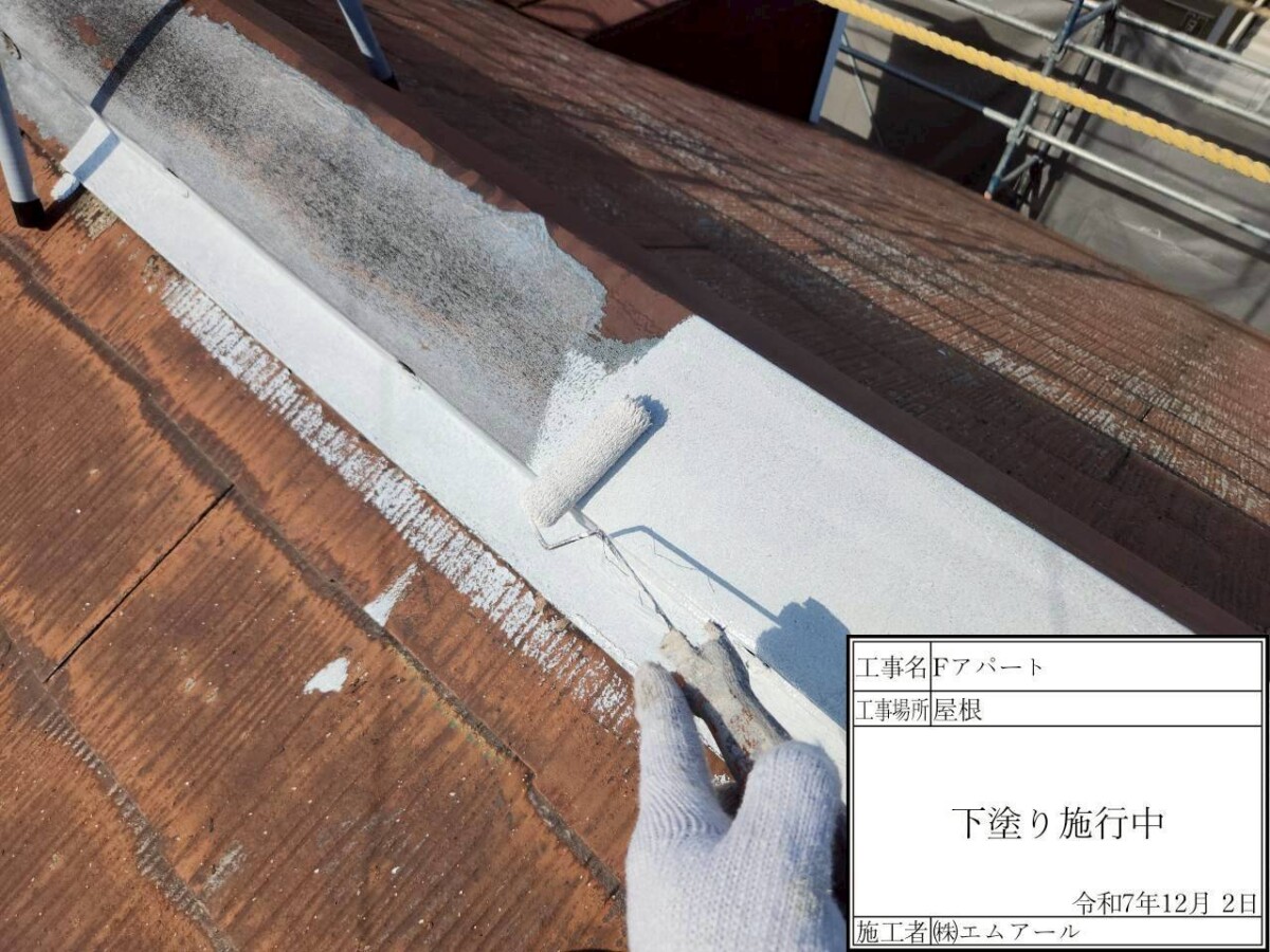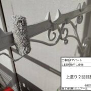 鉄部は下地処理ケレン作業を行い、錆を落とす作業と目荒しを行い塗料の密着性を高める作業行います。下塗りには錆止め効果のある塗料を使用します。