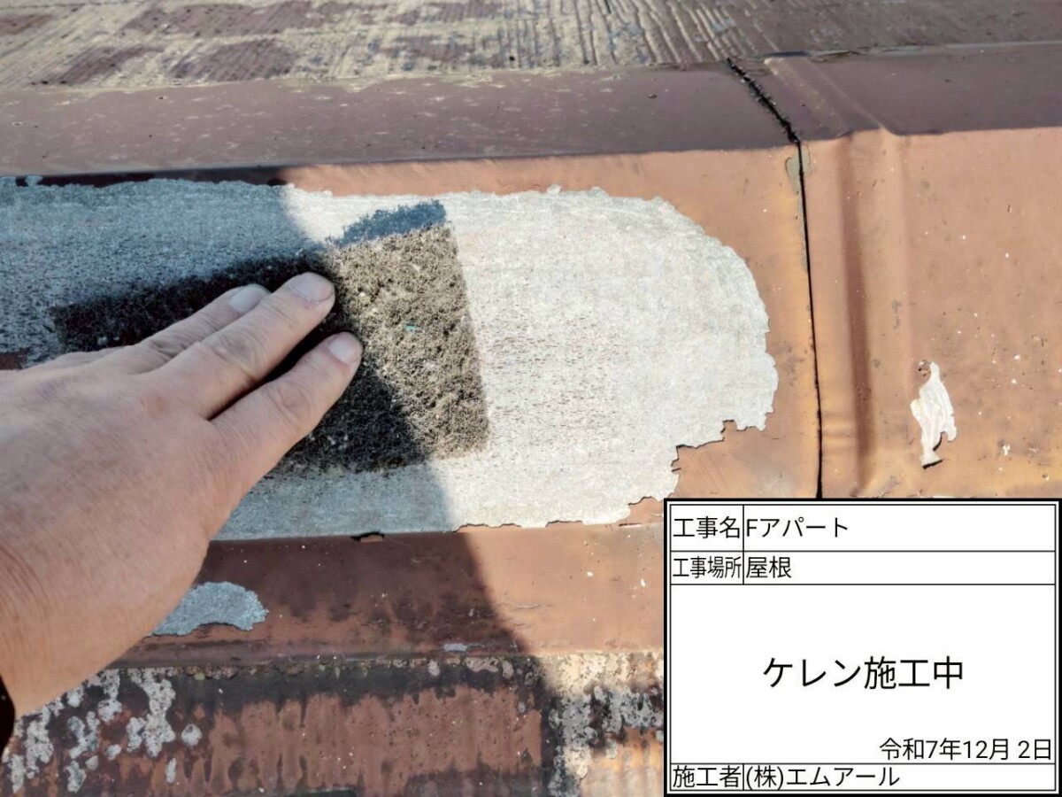 屋根の棟板金は金属製のため、ケレン作業を行い下塗りに錆止め効果のある塗料を使用する鉄部用の塗装作業を行います。ひび割れなどがある場合は補修を行い、屋根材に適した塗料を使用します。