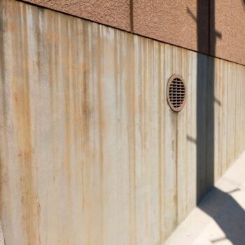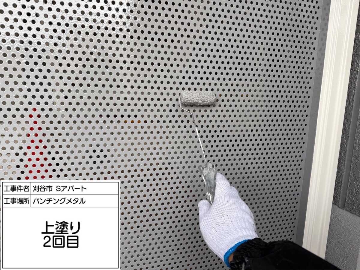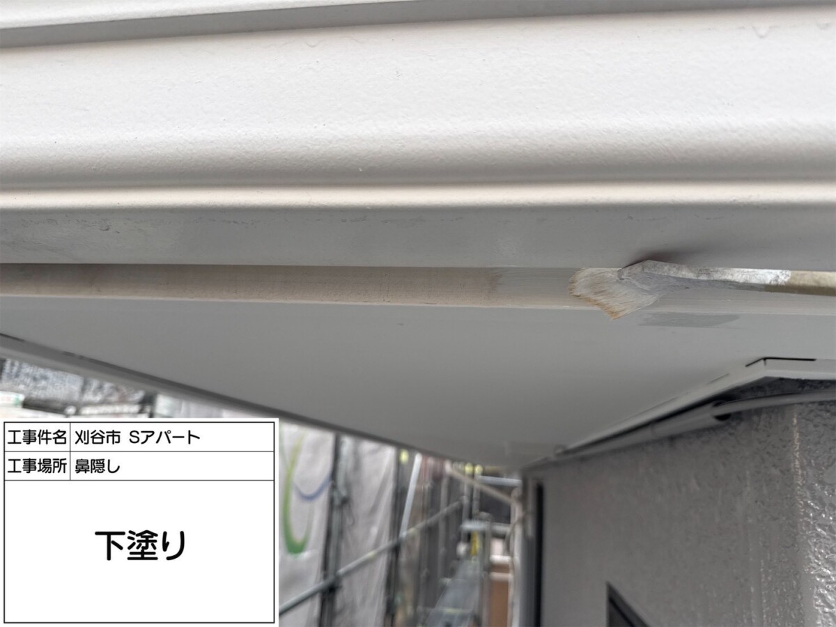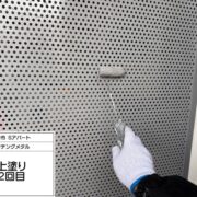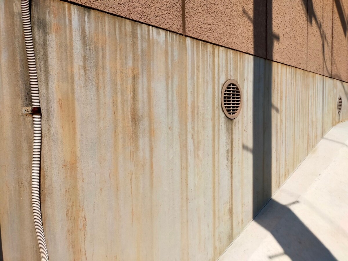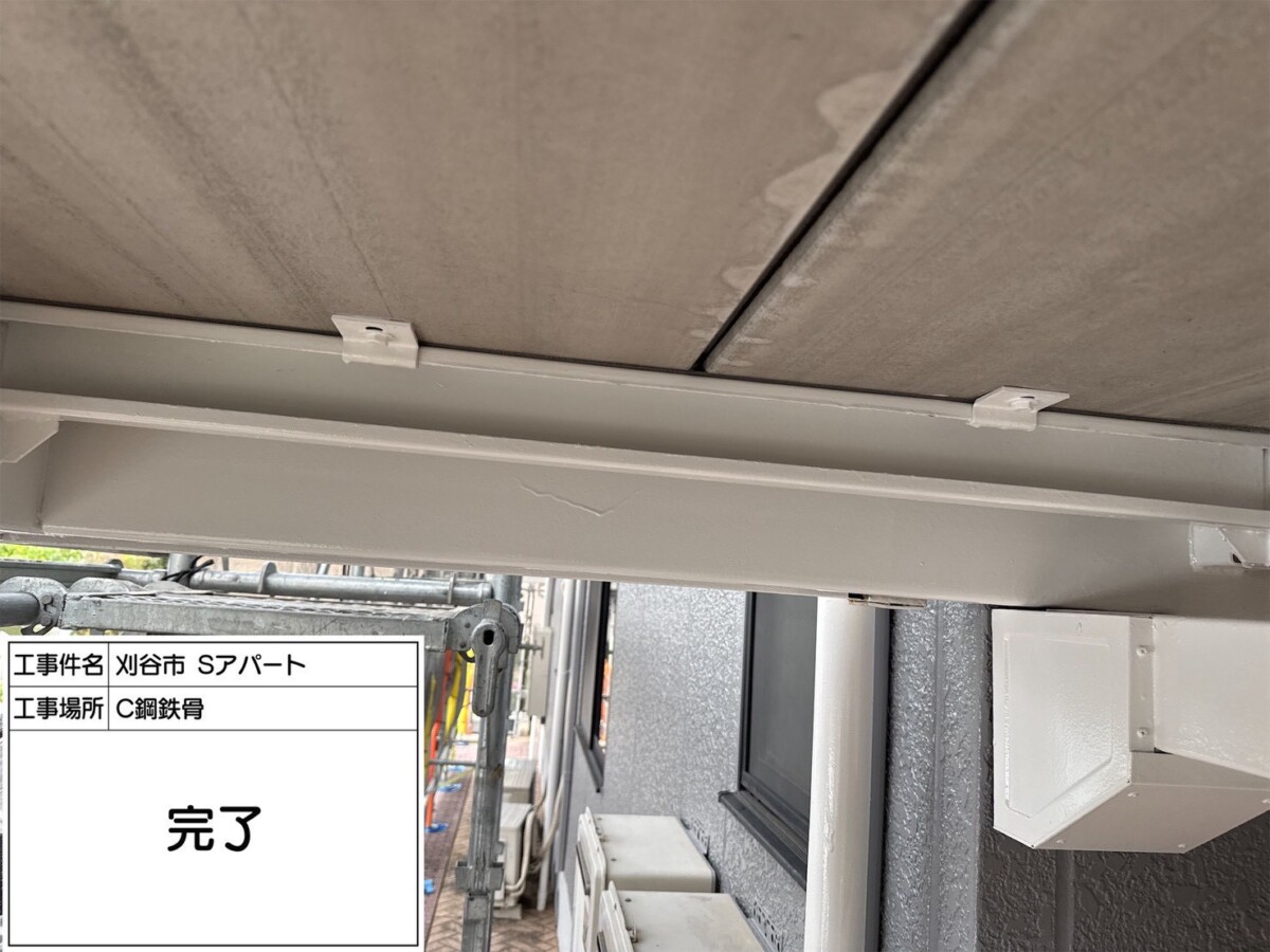 鉄部は下地処理ケレン作業を行い、錆を落とす作業と目荒しを行い塗料の密着性を高める作業行います。下塗りには錆止め効果のある塗料を使用します。