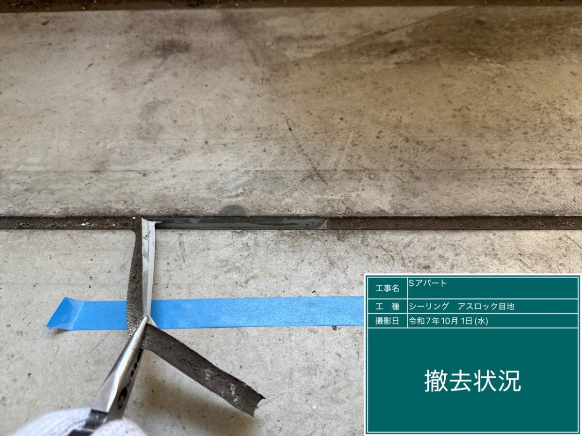 まずは劣化した既存のシーリング材を撤去する作業を行います。