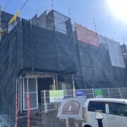 工事は足場組立から行います。安全に作業するためだけでなく、安定した作業場所を確保する事は施工品質を保つためにも重要です。安心して工事をお迎えいただけますよう、工事日までに担当者が近隣様へ工事のご挨拶をさせていただきます。