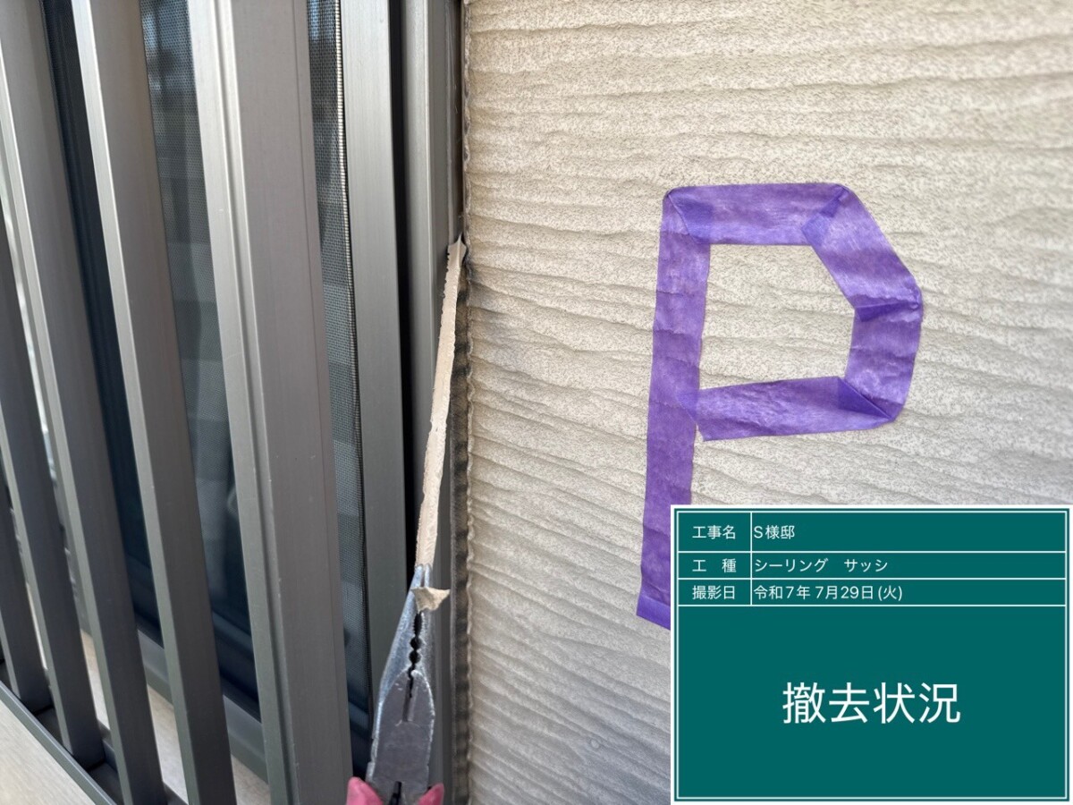 まずは劣化した既存のシーリング材を撤去する作業を行います。