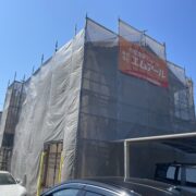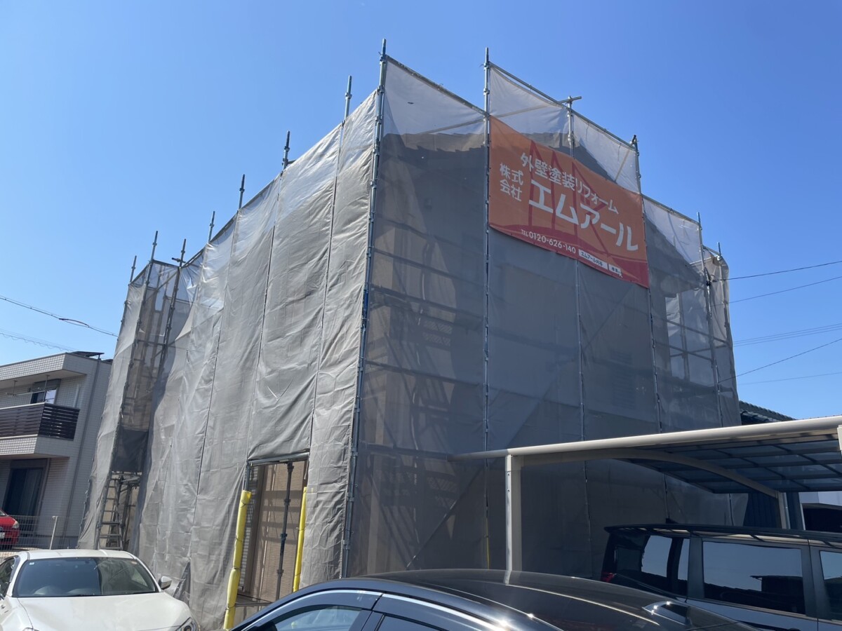 工事は足場組立から行います。安全に作業するためだけでなく、安定した作業場所を確保する事は施工品質を保つためにも重要です。安心して工事をお迎えいただけますよう、工事日までに担当者が近隣様へ工事のご挨拶をさせていただきます。