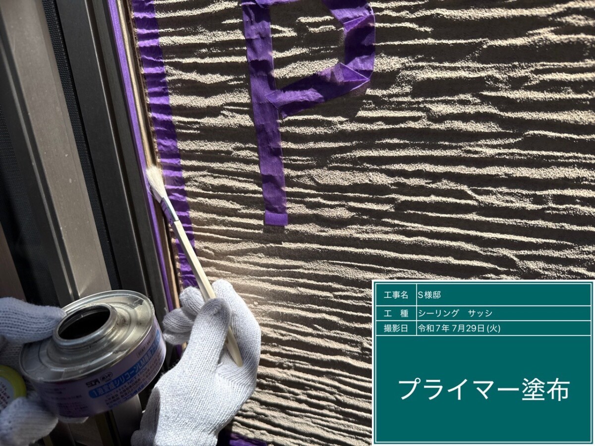 シーリング材が外壁材とより密着するよう、プライマーを塗布します。