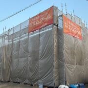 工事は足場組立から行います。安全に作業するためだけでなく、安定した作業場所を確保する事は施工品質を保つためにも重要です。安心して工事をお迎えいただけますよう、工事日までに担当者が近隣様へ工事のご挨拶をさせていただきます。