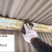 鉄部は下地処理ケレン作業を行い、錆を落とす作業と目荒しを行い塗料の密着性を高める作業行います。下塗りには錆止め効果のある塗料を使用します。