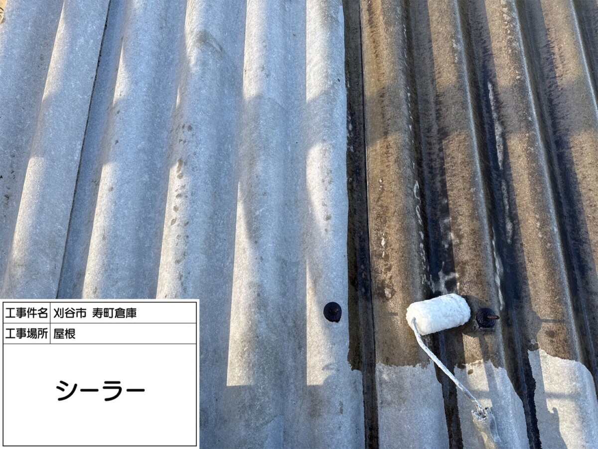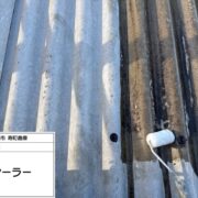 外壁同様にスレート屋根も吸い込みが激しいため、吸い込みを抑える「シーラー」と上塗り材の密着を高める「プライマー」を塗布します。素材や劣化状況に応じて使用材料や塗装回数を変えることで塗料本来の耐久性や効果を発揮することができます。