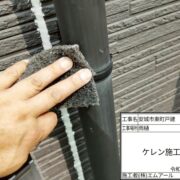 各所ケレン作業・養生作業・塗装前の処理作業を行います。ケレン作業はサビを落とすだけでなく、目荒らしすることで塗料の密着を高める効果もあります。窓など塗装しない箇所は養生を行い、塗料の飛散を防ぎます。