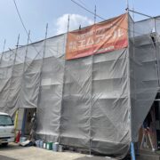 工事は足場組立から行います。安全に作業するためだけでなく、安定した作業場所を確保する事は施工品質を保つためにも重要です。安心して工事をお迎えいただけますよう、工事日までに担当者が近隣様へ工事のご挨拶をさせていただきます。