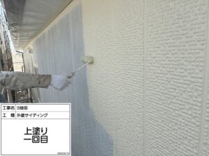 安城市T様邸の外壁には専用下塗り材である「ダイナミックプラサフ」を使用し、上塗り1回目と2回目には「スーパーセランフレックス」を使用致しました。