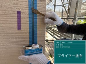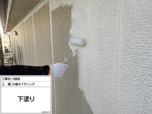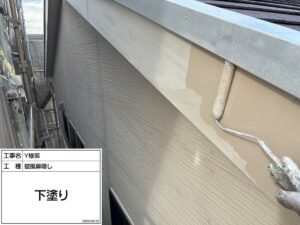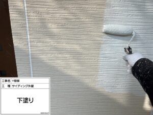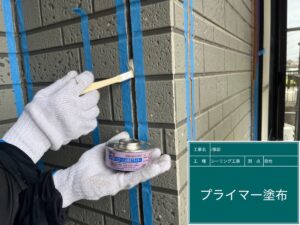 高浜市Y様邸の外壁には専用下塗り材である「ダイナミックプラサフ」を使用し、上塗り1回目と2回目には「スーパーセランフレックス」を使用致しました。