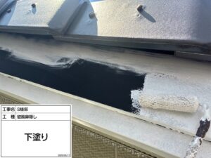 鉄部は錆が発生しやすいため、塗装を行う前にケレン作業を行い既存の塗料をしっかり落とし、錆止め効果のある下塗り材を塗布しました。